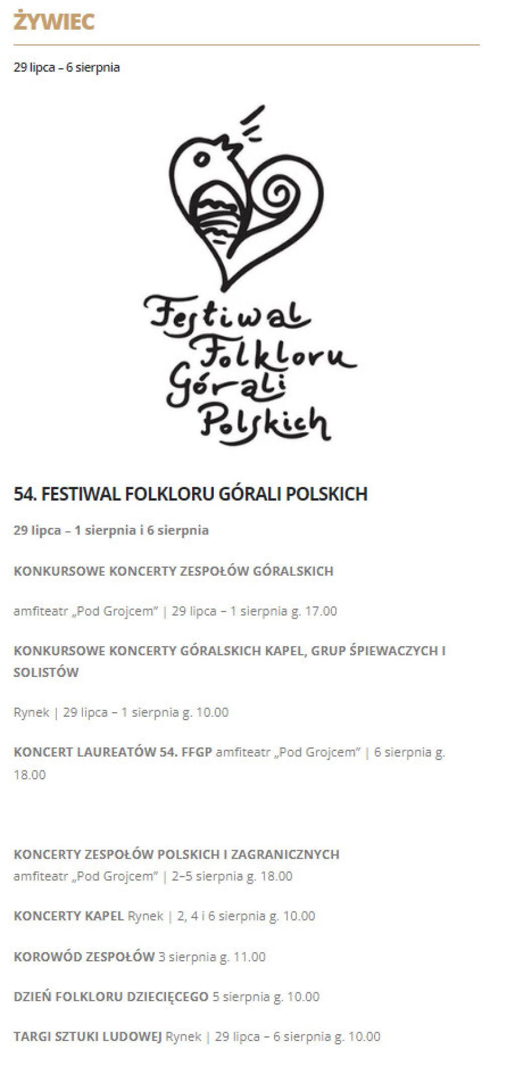 W ramach 60. Tygodnia Kultury Beskidzkiej odbędą się dwa przeglądy konkursowe: 54. Festiwal Folkloru Górali Polskich w Żywcu i 32. Międzynarodowe Spotkania Folklorystyczne w Wiśle.