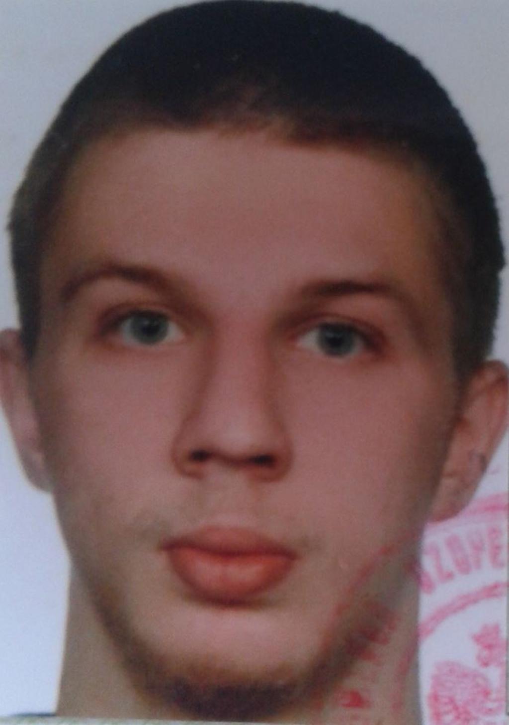 Wiek 19 lat, wzrost około 180 cm., waga 75 kg., szczupła budowa ciała, włosy krótkie proste ciemny brąz, twarz pociągła, nos normalny, oczy koloru niebieskiego, uzębienie pełne.