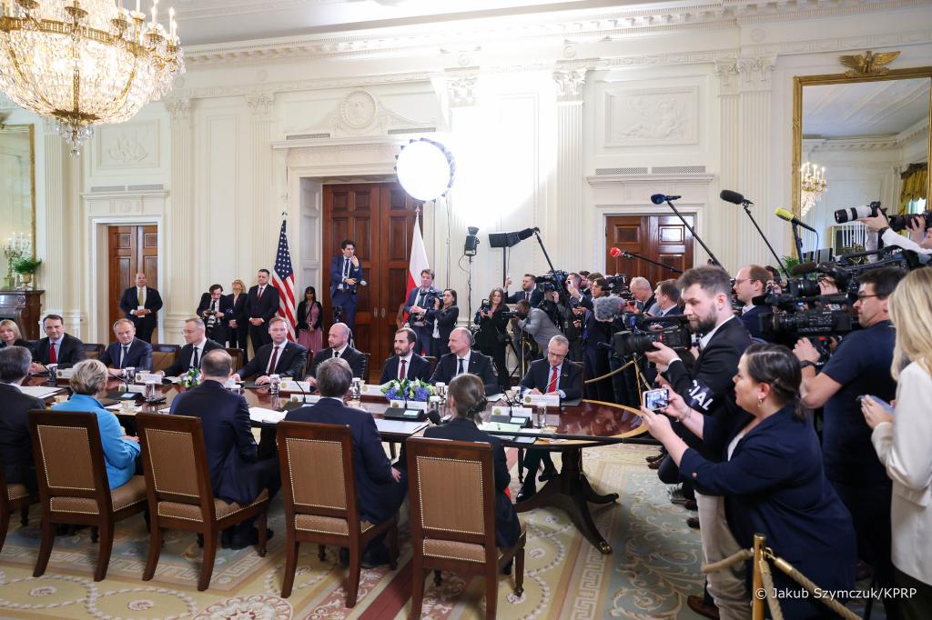 Polscy politycy zostali zaproszeni do Waszyngtonu w związku z 25. rocznicą wstąpienia naszego kraju do NATO. Najpierw odbyło się spotkanie w Gabinecie Owalnym, a następnie rozmowy plenarne obu delegacji.