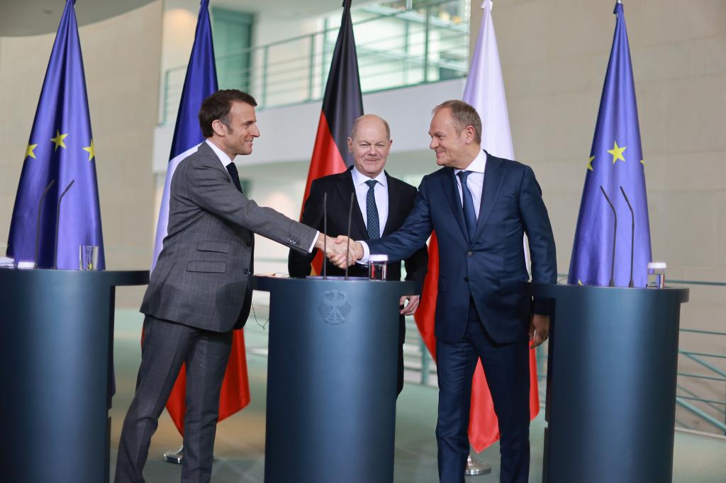 Przywódcy Polski, Niemiec i Francji rozmawiali o konieczności wsparcia naszego wschodniego sąsiada. Najważniejszy wniosek był taki, że nie możemy spowolnić tempa pomocy militarnej i finansowej dla Ukrainy. Współpraca w tej kwestii w ramach Trójkąta Weimarskiego jest kluczowa.
